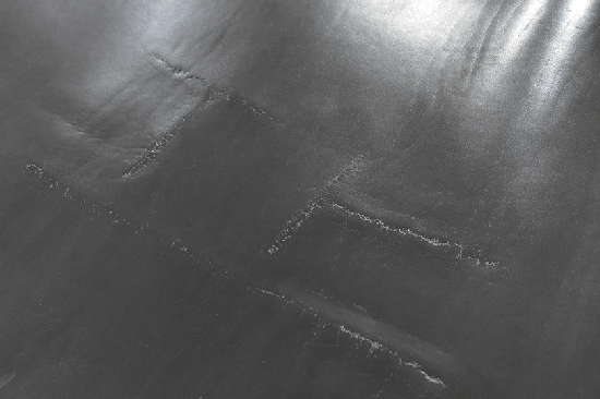 ブーツのアッパー用として、元厚のままでも”吊り込み”しやすいように、油脂成分を多く含ませて、銀(革の表面)を甘く作っているように思います。なので、厚みを1.0mm以下に漉くと想像よりもヘロヘロで伸びやすい印象をうける可能性があります。