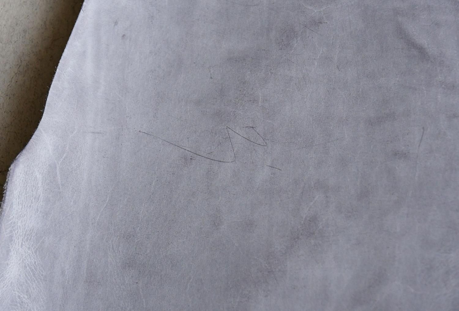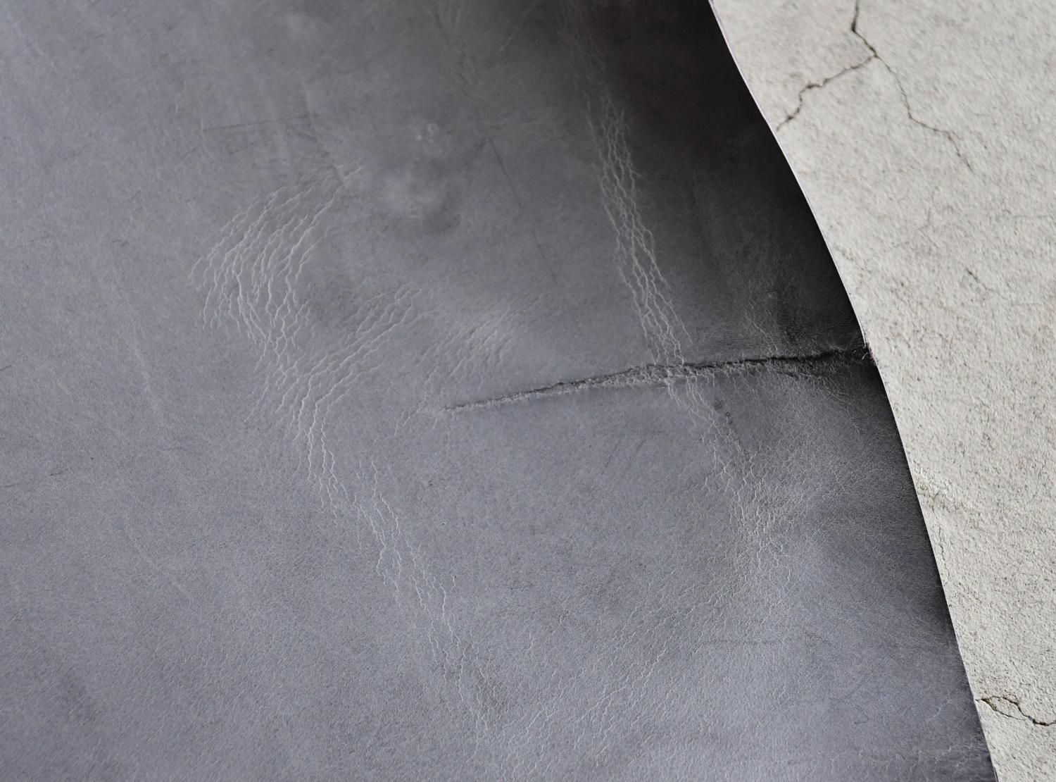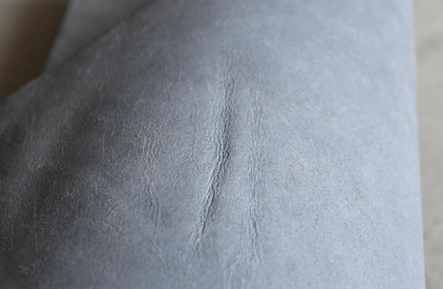 同社で製造されている『MAINE / マイネ』をベースとして、革の表面にワックスを吹き付けて白っぽく仕上げられた革になります。