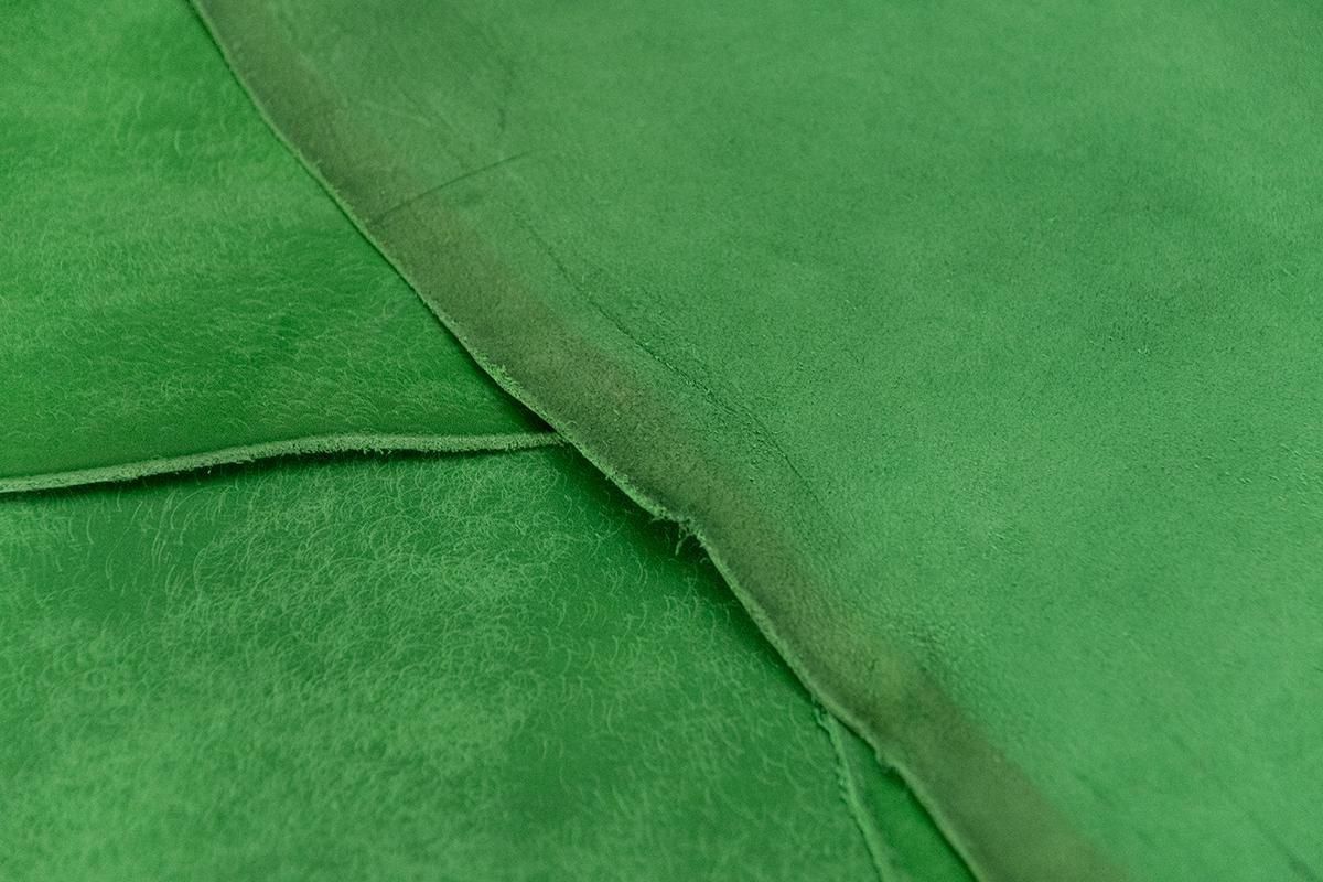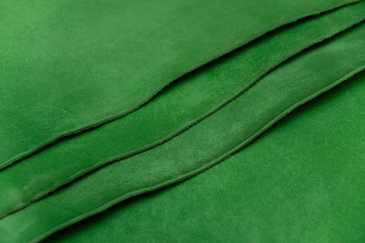 表面はスクラッチ加工によりざらついたタッチ感でマットな印象ですが、使い込むほどに通常の銀付き革以上の艶がでる、経年変化の振り幅が魅力の革です。