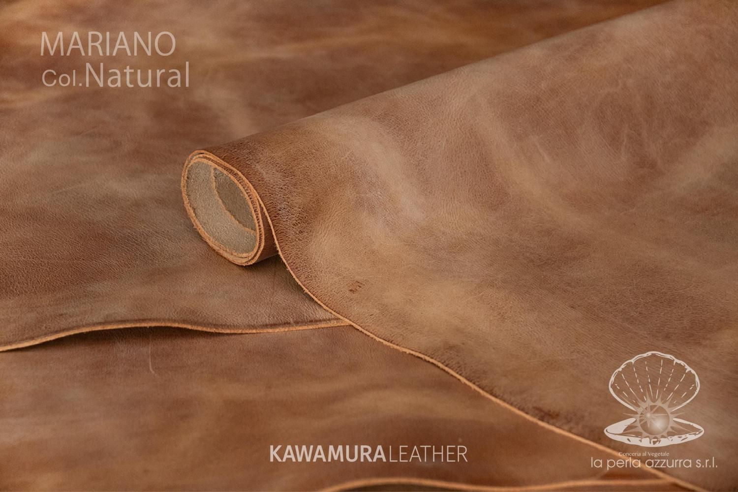 革の物性としては、植物タンニン鞣しで染料仕上げ、バケッタ製法によりオイルがしっかり入った革なので、使い込むほどに味わい深い色に変化し、自然な艶が出て来る、経年変化(エイジング)を愉しんでいただける革です。
